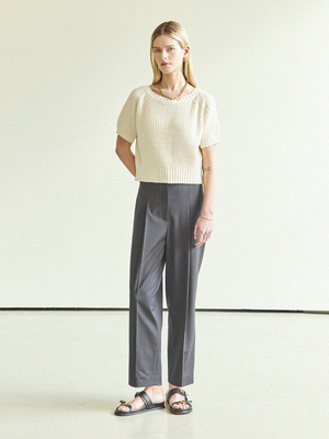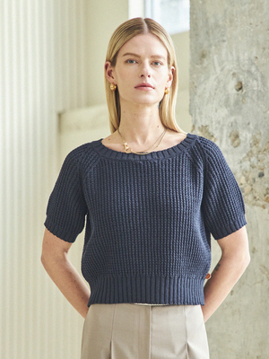 Back Ribbon Half Cropped Knit (Ivory) - Cropped volume knit made out of sturdy waffle material. - Loose fit knit that can be worn in the spring and summer. - Contrast colored ribbon at the back neck. - Ribbed hem and sleeve hem allows for comfortable wear. - Round neck accentuates the neckline and fem shoulder line. Available in one size Cotton 70%, Acrylic 30% / Ribbon: Cotton 100%