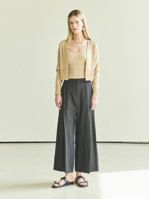 (Set) Glitter Cardigan & Sleeveless Knit (Light Gold) - *Caution: the glitter and spangles in the knit material can feel rough against the skin to some people, so if you are sensitive to this type of material please note this fact before purchasing.* - Unique knit and cardigan set made out of glitter and spangle knit material. - Subtle glitter creates a subtle mood. - Can be worn with an inner item or alone. - Can also be worn in the summer. Available in two sizes: S, M Polyester 100%