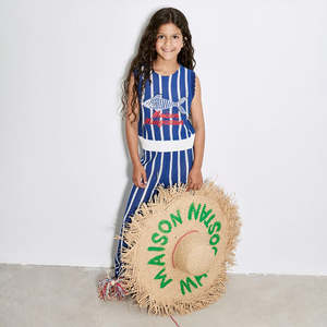 Maison Mangostan is a footwear brand that uses both traditional and eco friendly techniques to create comfortable and playful shoes for children. Handmade in Spain, the brand captures influences from art, music and their rich ethnic heritage in their unique and unusual designs. - Woven straw hat - Wide brim with frayed edges - Maison Mangostan design painted across the brim 100% Straw SS240069