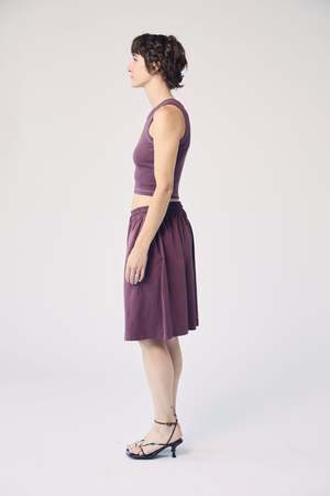 Inspired by the color of late summer vegetables, this tank top is garment-dyed in a dusty aubergine hue. Due to the hand-dyed nature of these shirts, the final color may vary slightly between dye batches and may settle non-uniformly, resulting in minor variation between each shirt. These shirts are sewn in China and hand-dyed in the USA. Made from 95% organic cotton and 5% elastene rib knit fabric.