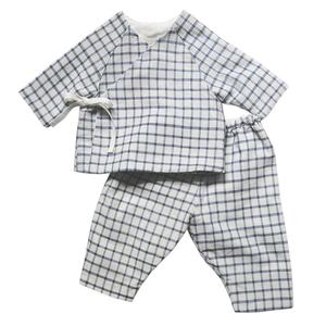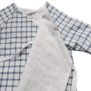 Maki is a brand from New York that is inspired by the Japanese roots of the designer, Maki Yahagi. Maki designs are minimalist and delicate, made with exquisite fabrics that meet the need for elegance and practicality. - Outfit in Japanese woven cotton with check pattern - Fully lined - Kimono wrap style jacket, with long sleeves and ribbon ties inside and outside - Pants with elasticized waist and two patch pockets on the back 100% Cotton Machine wash at 30C. SS053