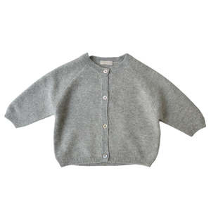 Maki is a brand from New York that is inspired by the Japanese roots of the designer, Maki Yahagi. Maki designs are minimalist and delicate, made with exquisite fabrics that meet the need for elegance and practicality. - Soft cashmere sweater - Button closure down the front - Ribbed knit trim - Long raglan sleeves 100% Cashmere Hand wash in cold water and lay flat to dry, or dry clean.