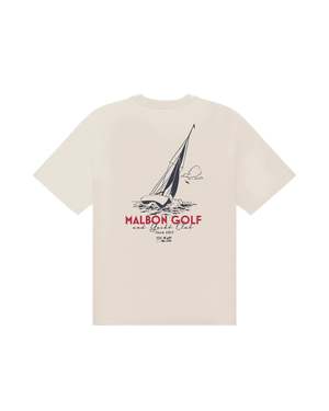 Vista Keel Tee in tofu by Malbon. Lightweight 100% cotton tee with relaxed fit and printed Malbon Golf graphics. Crafted in the USA for everyday wear.