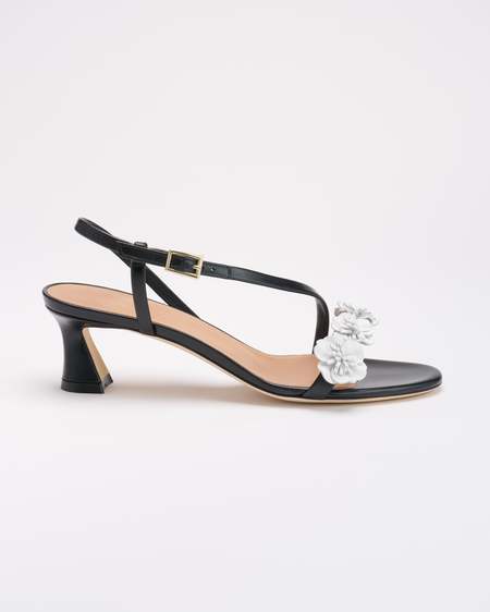 A versatile choice for modern city dressing. The Norah sandal returns for SS26 in richly textured dark brown embossed leather, a nod to the seasons moody elegance. Framed by slender double straps and a square toe, the silhouette is grounded by a sculpted 70mm block heel. - Color: Tobacco - Material: Embossed leather - Sole and lining: 100% leather - Style: Heeled sandals - Handmade in Italy - Fitting: True to size