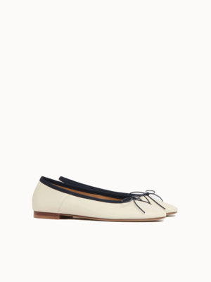 Ballerina flat with a flexible sole, cushioned interior, and round toe. Made from 100% Italian lambskin leather. Runs small, size up.