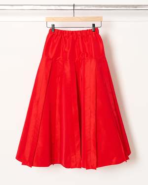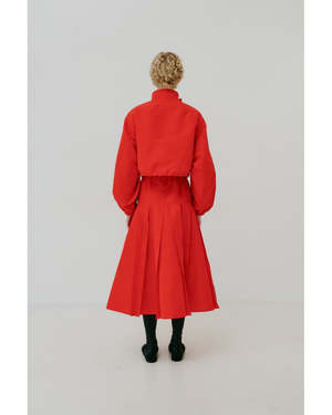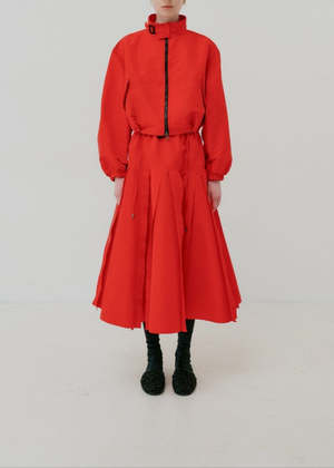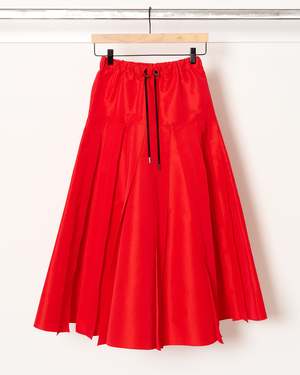 A pleated skirt in technical fabric from Mantu in red. - Drawstring waist with elastic - Pleated skirt - Side pockets - Oversized, size down for a trimmer look - Sizing (US/IT): 0/36, 2/38, 6/42 100% Polyester. Made in Italy.