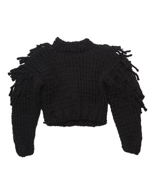 From Manuela Autumn/Winter 2018. Exclusive to Bien Bien, this handknit pullover sweater features fringe at top of bodice and sleeves. - Girl's sweater - 100% alpaca - Color: Black - Long, slim sleeves - Fringe at front of bodice - Fringe at front and back of shoulders - Slightly cropped length