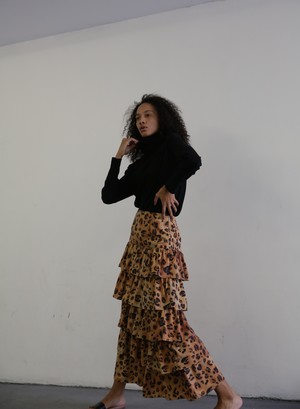 Tiered ruffle skirt in leopard print. Fitted, high waist, side zipper closure, unlined. 100% Tencel Lyocell Fabric does not provide stretch. Dry clean only