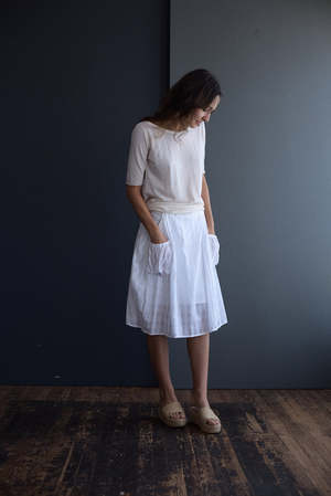 Two layers of cotton skirt - under layer is a straight cut with an outer layer that has two sets of pockets on the front. 100% cotton Made in France. Side zip closure.
