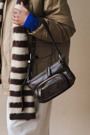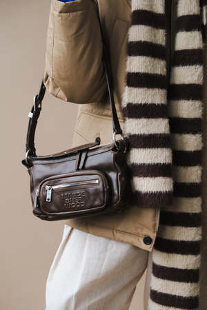 Marge Sherwood Mini hobo out pocket bag in washed brown pullup leather. Bag measurements: 9.06 in. x 5.12 in. x 2.76 in. Strap: 0.98 in. x 10.24 in. ~ 17.72 in. Made in Korea. 100% cow leather. DD047330 PIPE AND ROW