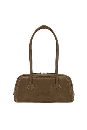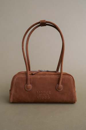 Marge Sherwood soft baguette handbag in chestnut nubuck sueded brown. 29cm x 7cm x 12cm 100% cow leather. DD047657