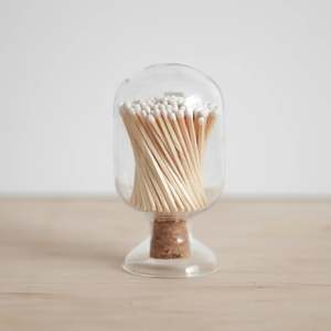 This hand-blown glass cloche comes filled with four-inch matches and a strike-on-bottle flint strip. When paired with a candle, it makes a lovely housewarming gift thats both functional and a beautiful decor accent. Evergreen Roots NW USA Details Hand Blown Glass Cloche is approx 5 1/4" tall 150 matches