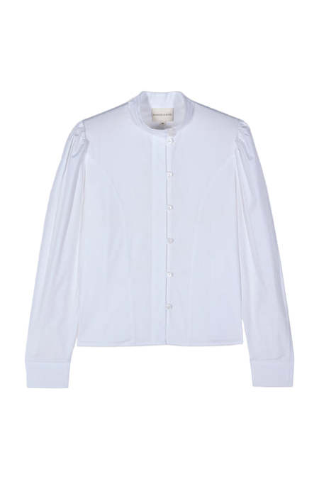 Refined and contemporary, the Iza Shirt from Maria de la Orden fuses mandarin-inspired detailing with modern tailoring. - Regular-fit silhouette for effortless wear - Mao collar with oriental-style button closures for subtle cultural influence - Puffed sleeves add volume and a touch of drama - Crafted from crisp cotton for comfort and polish A versatile piece that elevates both casual and dressier ensembles with understated elegance. 100% Cotton.