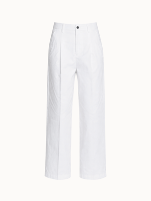 - Mid-rise pant - Wide-leg silhouette - Front pleats - 100% organic Japanese cotton