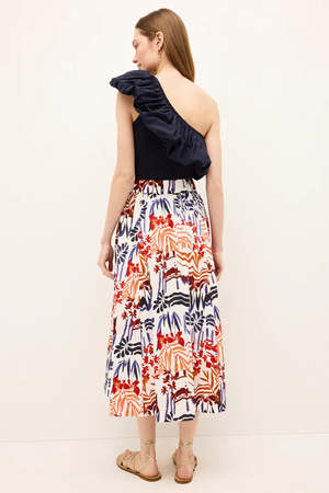 Marie Oliver's Sasha midi skirt features a voluminous silhouette, elastic waistband, and functional pockets. The latest addition of a tropical floral adds a touch of romance. Material: 100% cotton.