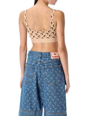 Women > Clothing > Topwear This Marine Serre sport bra is crafted from stretchy, form-fitting fabric with the iconic moon print. Featuring a square neckline, sleeveless design, and elasticated underband, it ensures a comfortable and secure fit for everyday wear or light activities. Stretchy, form-fitting fabric Iconic moon print Square neckline Sleeveless design Elasticated underband Model is 1.70 m and wears size S Composition: 88% polyamide, 12% elastane.