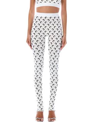 Women > Clothing > Pants & Shorts > Leggings These high-rise leggings by Marine Serre showcase the labels signature all-over moon print in a sleek, second-skin silhouette. Crafted from stretch jersey for a sculpting fit, they feature a tonal elastic waistband detailed with the Marine Serre logo2. The distinctive ankle loop finish adds both functionality and a modern, sporty touch. - Stretch jersey fabric with all-over moon print - Slim, second-skin fit - High-rise waist - Tonal elastic waistband with Marine Serre logo2 - Ankle loop finishing - Model is 1.75 m and wears size S Composition: 88% polyamide, 12% elastane.