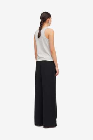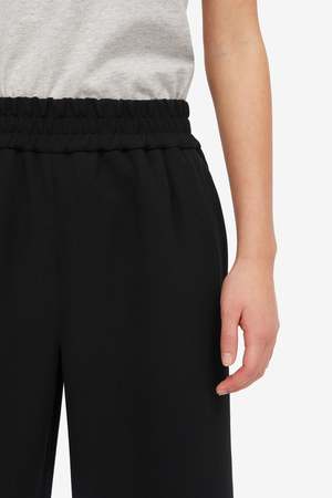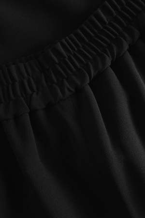 Experience minimalist luxury with these wide-leg pants in a sleek black shade. The elastic waistband ensures comfort, while the design reflects Nordic aesthetics and natural elements.