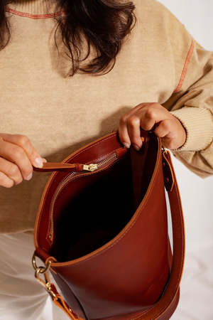 The Frances Bucket Bag from Market Canvas is designed to hold all you need to keep up with your busy lifestyle, effortlessly combining style and functionality. The open top offers easy access to your goods, while the zipped interior pocket provides a secure place to store your essentials. Visible exterior stitching gives a playful touch to this minimalist beauty. Dimensions: 12"W x 10"H x 10"D Locally sourced 100% premium top grain leather with natural brass hardware. Unlined and plastic-free.