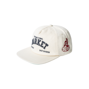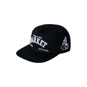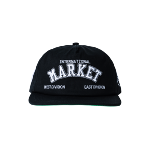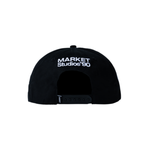 100% cotton 5 panel cap with embroidered details. Adjustable snapback. MARKET woven flag label at the back. Made in China.