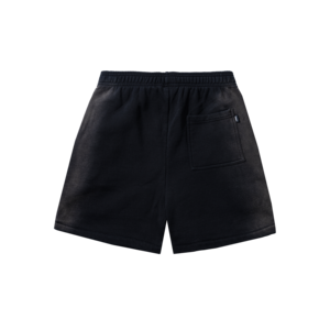 100% cotton fleece shorts with screen-printed details. Features an elastic waistband with two side pockets and one back pocket. Made in China.