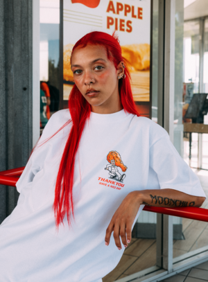 Fresh out the bucket. Official collaboration with KFC. This is a pre-sale item please allow 2-3 weeks for order processing. 100% cotton tee with a screen-printed design.