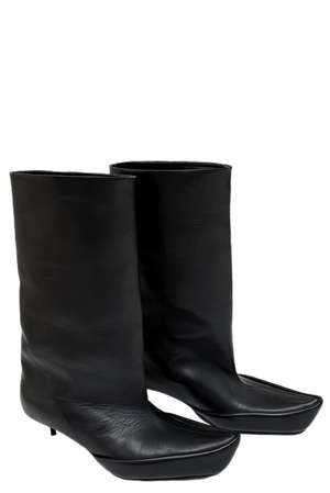 Marko Bakovi shoes merge heritage craftsmanship with bold, experimental design. Sculptural yet wearable, each pair is meticulously crafted in his Amsterdam studio, reflecting a balance of artistic innovation, material exploration, and functional wearability. The Yara Kitten Boot combines elegance and ease in a sleek, contemporary silhouette. Featuring a low, sculpted heel and refined pointed toe, it offers a subtle lift while maintaining all-day comfort. Crafted from premium leather with clean lines and minimal detailing, this boot embodies timeless sophistication with a modern edge, making it a versatile statement piece for both casual and dressed-up occasions. Colour: Black. Composition: Leather. Made in Portugal.
