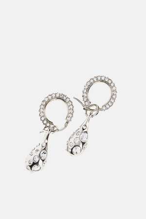 Brass earrings with crystals in a silver color. Composition: 80% Brass, 20% Glass.