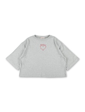 Girls > Clothing > Topwear > T-Shirts & Polo Shirts The Marni Girls Cropped T-shirt redefines casual style with a modern, boxy silhouette. Crafted from soft cotton jersey, it features short sleeves and a clean crew neck, enhanced by a delicate embroidered heart motif with Marni lettering on the chest for a subtle yet distinctive finish. Cropped length Boxy fit Crew neckline Short sleeves Embroidered heart motif with Marni logo2 Straight hem Composition: 100% cotton.