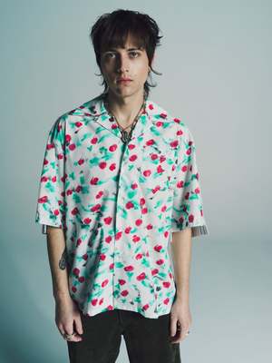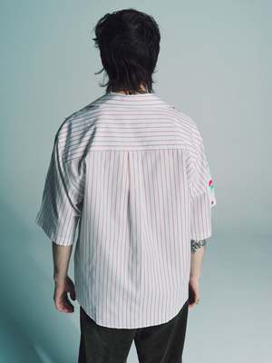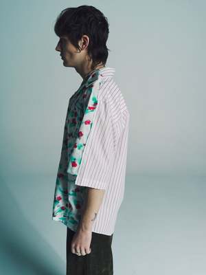 Short-sleeved bowling shirt made from cotton poplin. Half-and-half asymmetrical style, featuring this season's Reverie brush-stroke flower print on the front and classic stripes on the back. Boxy fit with chest pocket. Button closure. Rear canvas Marni label. Can be worn with a bowling collar or fully buttoned up. Cotton Model wears Size