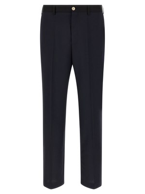 Men > Clothing > Pants > Pants Tropical two-tone wool pants with straight leg, pressed pleat, zip and front button closure, and welt pockets. Composition: 100% virgin wool.