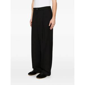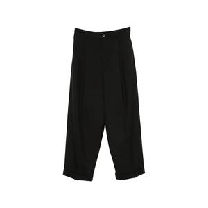 Men > Clothing > Pants > Pants Black pants with pleats, a cuffed hem, and button closure in a regular fit with a mid-rise waist.