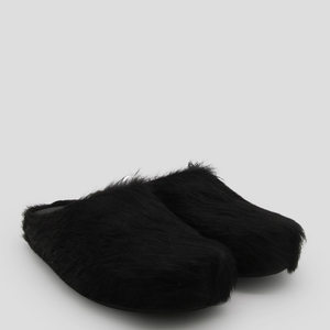 Men > Shoes > Other Shoes Black leather sandals from Marni featuring a round toe, open back, slip-on style, calf hair upper, and rubber sole. Composition: Cover: 100% Leather; Sole: 100% Elastodiene.