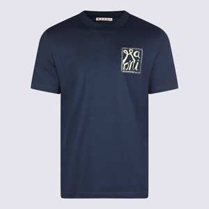 Men > Clothing > Topwear > T-Shirts Navy cotton T-shirt from Marni featuring a crew neck, short sleeves, frontal stamp, and regular fit. Composition: 100% Cotton.