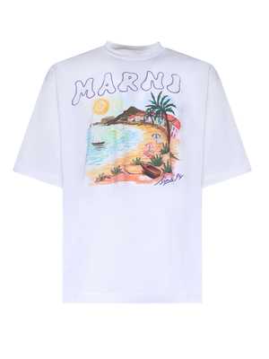 Men > Clothing > Topwear > T-Shirts Made of pure cotton jersey. Crew neck. Short sleeves. Front print. Dropped shoulders. Size shown is 48. Color: White.