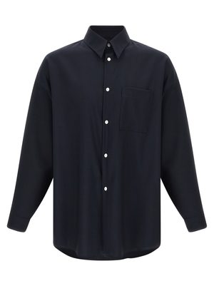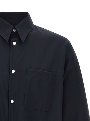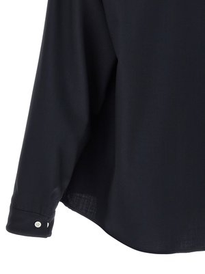 Men > Clothing > Shirts "Tropical wool" fabric shirt with a classic fit, collar, front button closure, front patch pocket, and long cuffed sleeves. Composition: 100% virgin wool.
