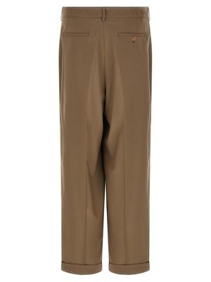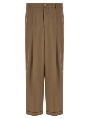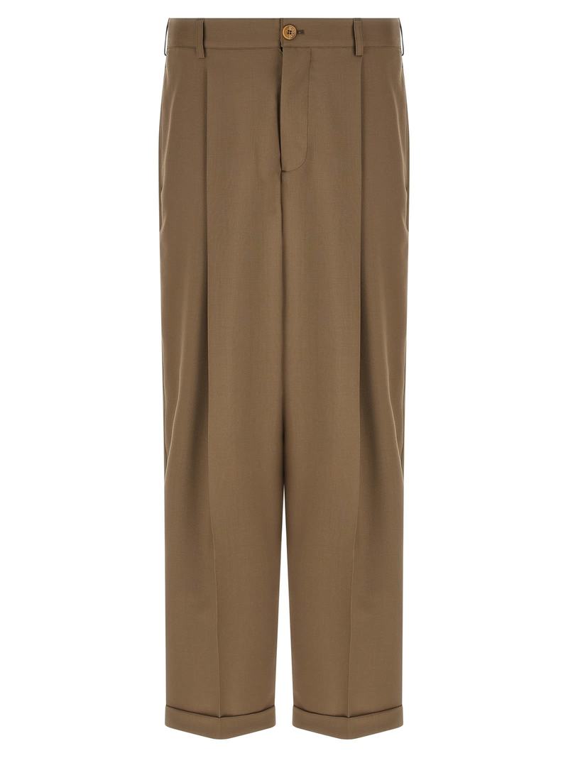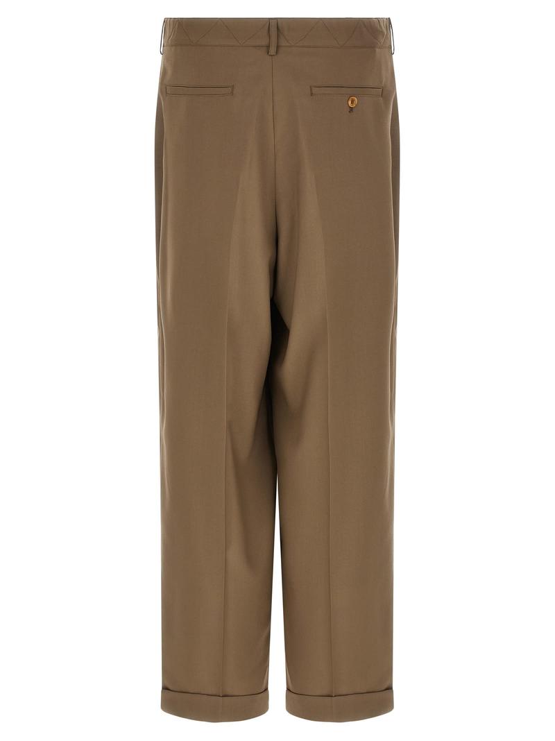 Men > Clothing > Pants > Pants Authentico cool wool trousers with a high waist, pins, stretched pleat, wide leg, low crotch, elastic back waistband, front zip and button closure, pockets, turn-up at the hem, and viscose lining. Composition: 100% virgin wool