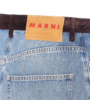 Women > Clothing > Skirts Marni denim skirt with leather at the waist, zip and button closure, five pockets, patch logo2 on the back, and a back pocket. Mini model. Composition: 100% Cotton; 65% Polyester, 35% Cotton; 100% Cow Leather.