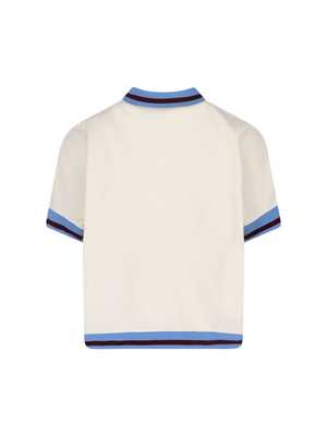 Women > Clothing > Topwear > T-Shirts Marni cream cotton button polo shirt with collar, button closure, short sleeves, front logo2, contrast finish, and straight hem. Composition: 100% Cotton.