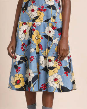 The Poplin Midi Dress with Melodia Flowers Print is a sleeveless midi dress featuring a straight bodice, round neckline, and tiered waist, crafted in a printed cotton poplin. - 100% cotton woven - Type: Dresses