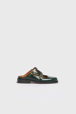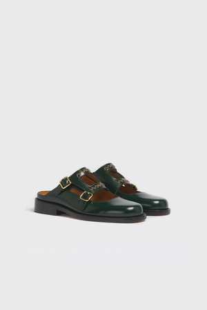 Step into understated luxury with this Marni Bambi 3.0 loafer, expertly crafted from sumptuous brushed calf leather in a rich deep green. The signature double buckle strap adds refined detail, while the hand-embroidered Marni symbol in contrasting thread brings artisanal character to every step. Premium leather lining and sole ensure lasting comfort and durability. - Upper: 100% Calf Leather - Lining: 100% Calf Leather - Inside: 100% Calf Leather - Sole: 100% Calf Leather Made in Italy.