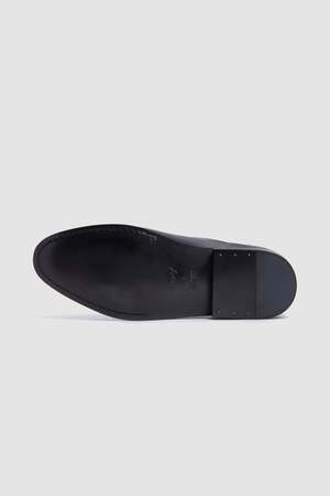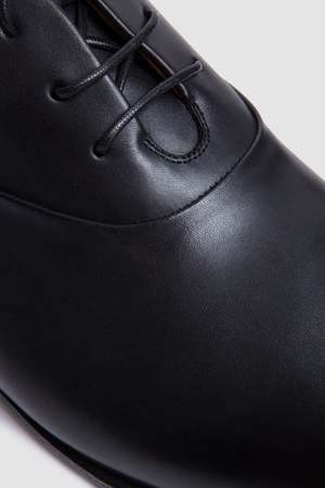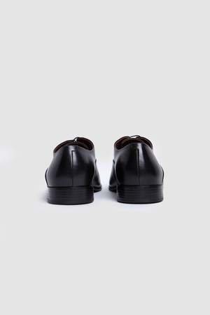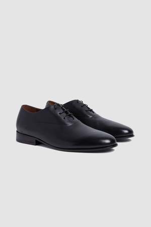 Codina Derby in smooth leather in the color black. Codina is a sophisticated and timeless shoe. The gentle shape, the contained and rounded volumes, and the thin hand-painted leather sole: all its details are harmonious and free from excess.