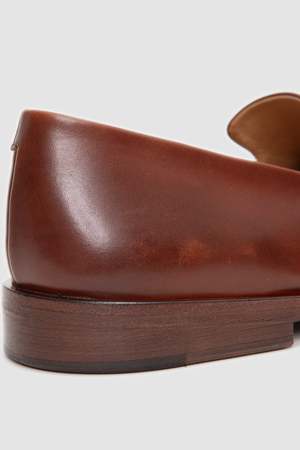 This men's penny loafer combines the charm of traditional design with modern functional details. The visible stitching enhances the craftsmanship and elegance of the model, while the rounded toe adds a timeless classic touch. The hand-coloured natural leather sole, featuring a rubber insert on the heel, offers sophistication and durability, perfect for the man looking for a versatile and high-quality shoe.