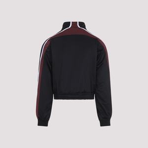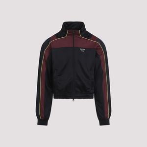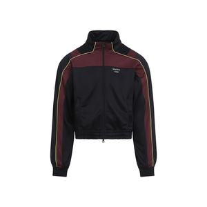 Men > Clothing > Coats & Jackets > Jackets Martine Rose Shrunken Jacket in black and burgundy tech fabric. Features contrasting piping on the front, a stand collar, two-way zip fastening, logo2 embroidery on the chest, two front pockets, long sleeves, and elastic edges.