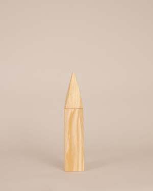 These sculptural salt and pepper grinders are inspired by the mountainous landscape of Martino's home region in Italy. Each piece has a unique grain and is beautifully crafted from ash or walnut wood. The top of the vessel unscrews to allow spices to be added, and a sturdy ceramic grinder mechanism is located on the bottom to adjust the grind size. DETAILS: 11 in | Ash or Walnut, sold separately | Produced in the UK