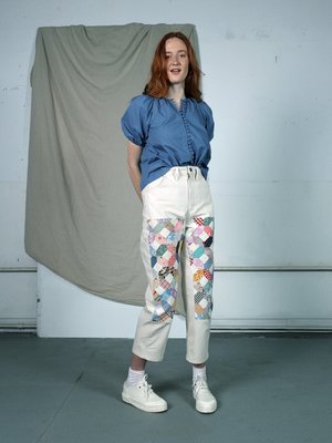 The Marvin Ruby version of the classic carpenter pant, the Quilted Park Pant was inspired by our favorite vintage work pants. Easy to dress up or down, the Park brings a mid-weight organic cotton canvas staple with a twist to any wardrobe. The Quilted Park Pant fits snug at first, but stretches to your shape after a few wears. 100% organic cotton canvas + vintage quilt top. Made in Brooklyn, NY.