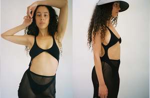 Make a statement at the beach with our alluring one-piece swimsuit. With an open back and stylish cutouts at the front, this swimsuit combines fashion-forward design with the comfort of 100% Lycra fabric. Layer under a sheer dress or pair with a skirt. Worn here with the Sublime Slip Skirt.
