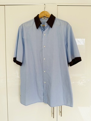 Clerks but make it fashun! The brown contrast on this super 90s oversized s/s button up is **chefs kiss