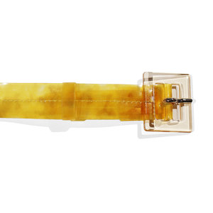 the Maryam Nassir Zadeh Soledad Belt is a simple, transparent belt clear buckle center stitch detail squared end lightweight & durable 100% Perspex made in Italy XS/S: 24.75" - 29.75" M/L: 29.50" - 33.50"