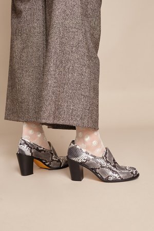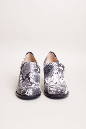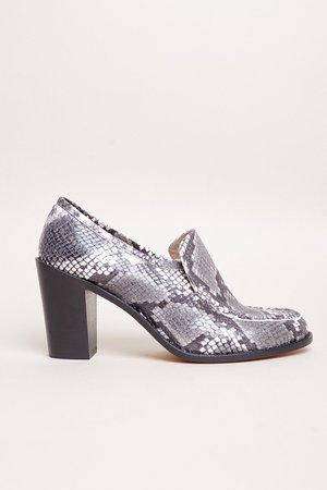 Known for her keen eye for details, this leather Maryam Nassir Zadeh loafer is a knockout! Let this cobra loafer peek out from under your favorite trouser, or pair back to a mini dress and fun socks. Woman-owned brand Small production Made in Italy Details: - Slip on loafer - Rounded toe - Snake print upper - Black wooden block heel - Leather sole - 100% leather - Cobra - 3.5 inch heel - Made in Italy Sizing: - True to size - Italian sizing, see size guide for reference